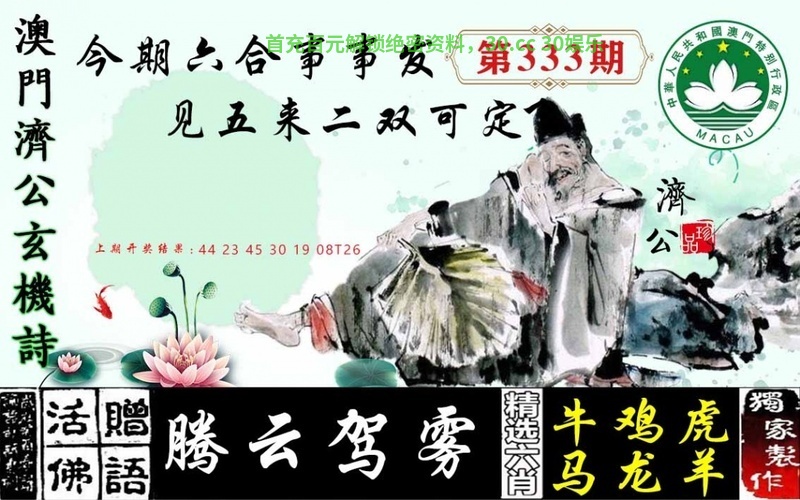 | 335期绝杀二肖『马虎』开:狗44准 |